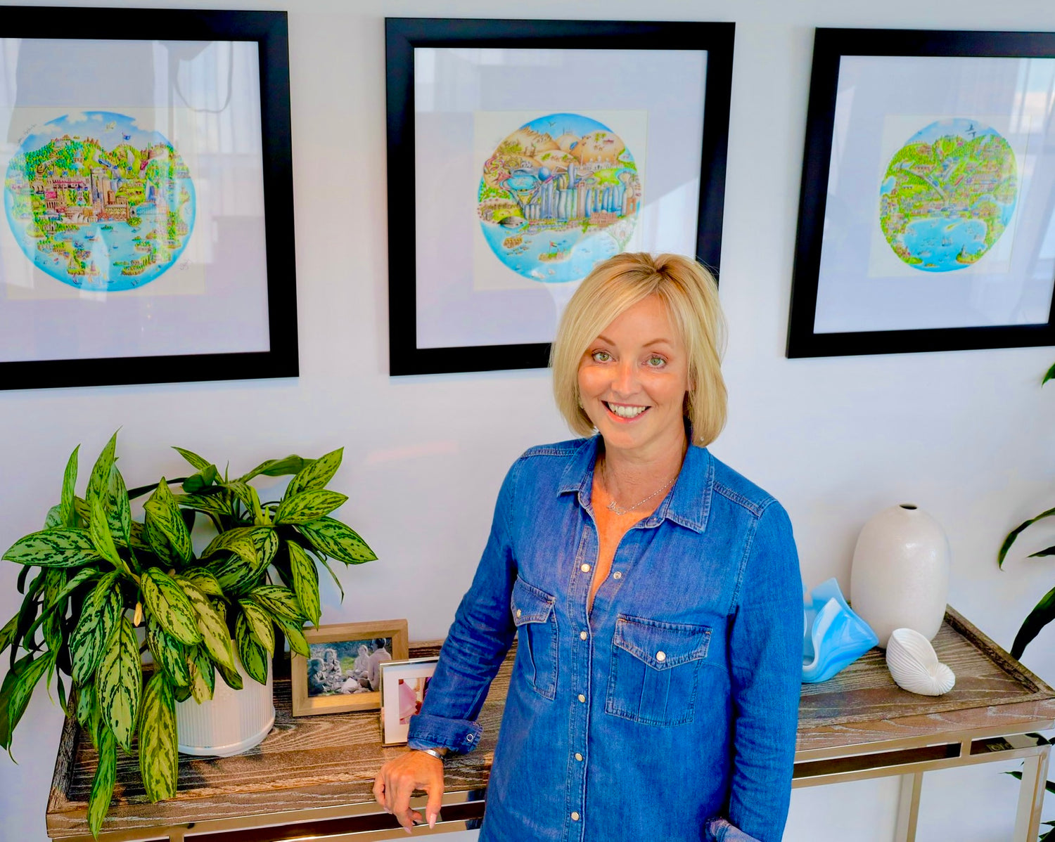 Nikki Baily creates and paints with a kaleidoscope of colour and a unique detailed style. Her spherical landscapes, using vibrant watercolour and pen, will take you on a journey through each city, making you look a second, third and fourth time to find something new.